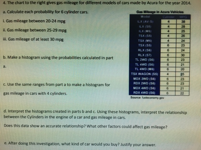 Solved 4 The Chart To The Right Gives Gas Mileage For Di